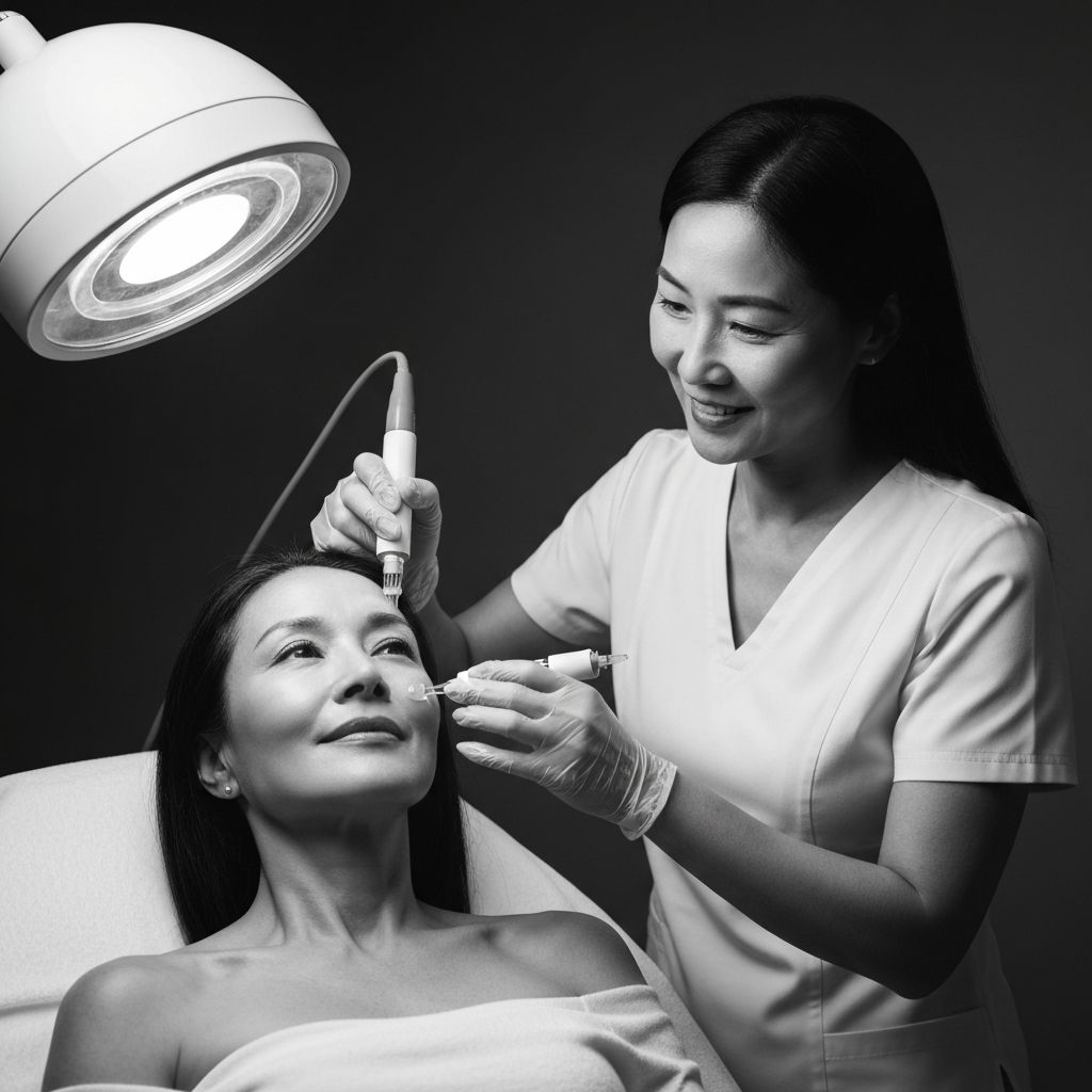 The treatment area is cleansed, and in many cases microneedling or fractional laser is used to create pathways for deep absorption.